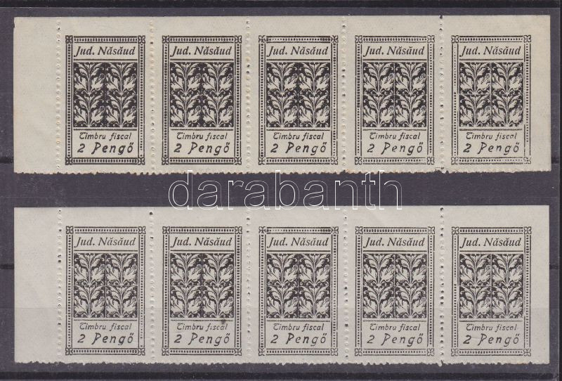 1945 Naszód városi illetékbélyeg 2 felső ívrész (vízszintes 5-ös csík)... https://www.darabanth.com/de/145-Fernauktion/145.0/Andere-Sammelgebiete/Paraphilatelie~199/1945-Naszod-varosi-illetekbelyeg-2-felso-ivresz-vizszintes-5-os-csik-ketfele-nyomat-~II432849