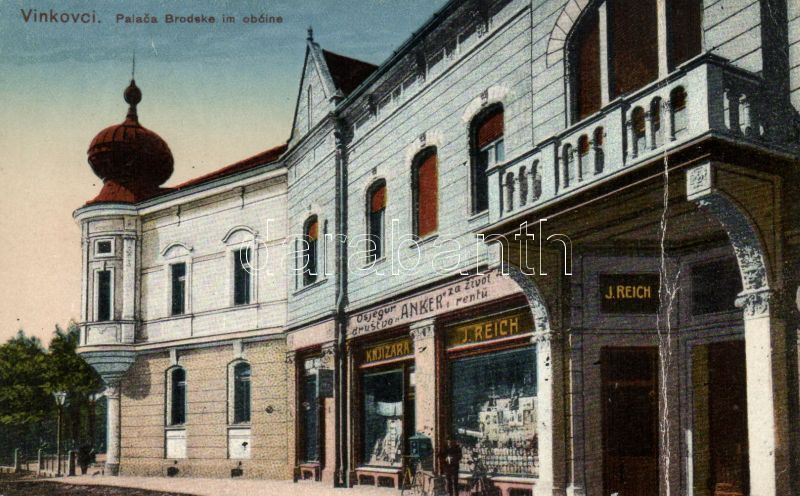 Vinkovci the bookshop of J. Reich (Fa) https://www.darabanth.com/de/145-Fernauktion/145.0/Ansichtskarten/Kroatien~500010/Vinkovci-the-bookshop-of-J-Reich-Fa~II433560