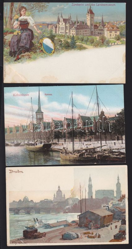 Beschreibung: 22 db jó minőségű, háború előtti európai városképes lap, túlnyomórészt megíratlan, közte szép lithok is / 22 mainly unused European town-view cards