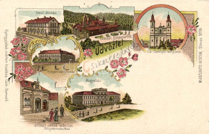 Csíkszereda with railway station and the bookshop of György Jakab Márt... https://www.darabanth.com/de/145-Fernauktion/145.0/Ansichtskarten/Siebenburgen~500007/Csikszereda-with-railway-station-and-the-bookshop-of-Gyorgy-Jakab-Marton-litho-cut~II435103