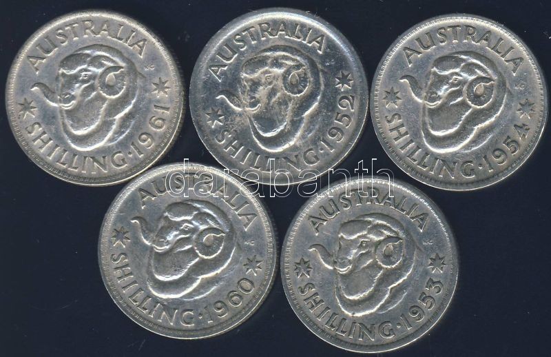 Beschreibung: Ausztrália 1952-1961. 1Sh Ag (5x) klf évszámokkal! T:vegyes