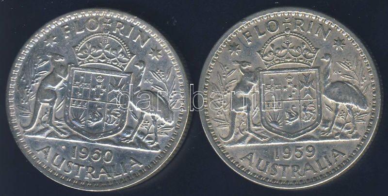 Ausztrália 1959-60. 1Fl Ag (2x) T:2- https://www.darabanth.com/de/145-Fernauktion/145.0/Numismatik/Auslandische-Munzen~500103/Ausztralia-1959-60-1Fl-Ag-2x-T2-~II432911