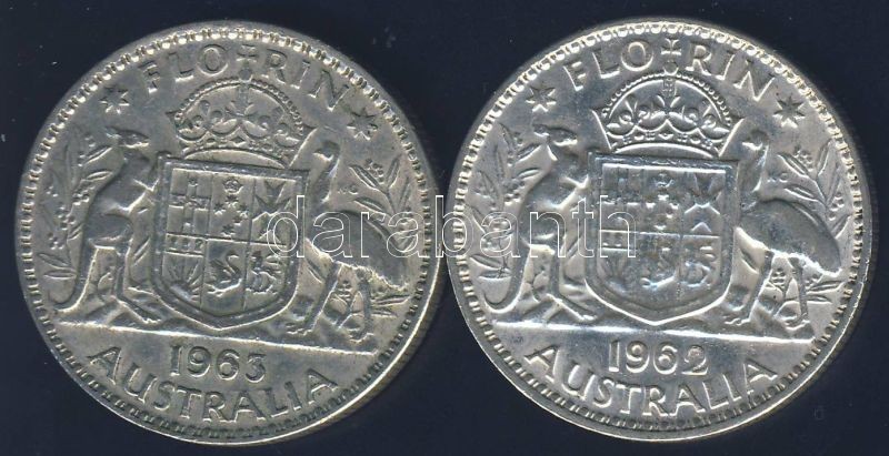 Ausztrália 1962-63. 1Fl Ag (2x) T:2-,3+ https://www.darabanth.com/de/145-Fernauktion/145.0/Numismatik/Auslandische-Munzen~500103/Ausztralia-1962-63-1Fl-Ag-2x-T2-3plus~II432916
