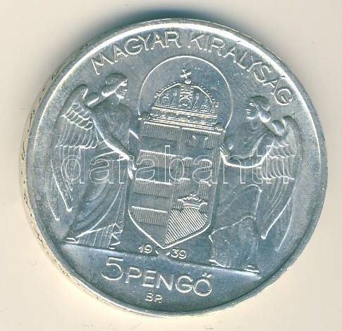 1939. 5P Ag "Horthy - balra" T:2 https://www.darabanth.com/de/145-Fernauktion/145.0/Numismatik/Ungarische-Munzen~500099/1939-5P-Ag-Horthy--balra-T2~II431869