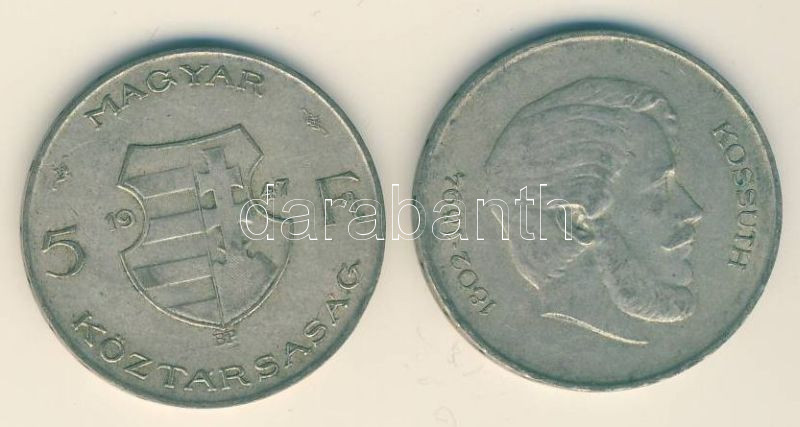 1947. 5Ft Ag (5x) "Kossuth" T:2-,3 ph. https://www.darabanth.com/de/145-Fernauktion/145.0/Numismatik/Ungarische-Munzen~500099/1947-5Ft-Ag-5x-Kossuth-T2-3-ph~II431941