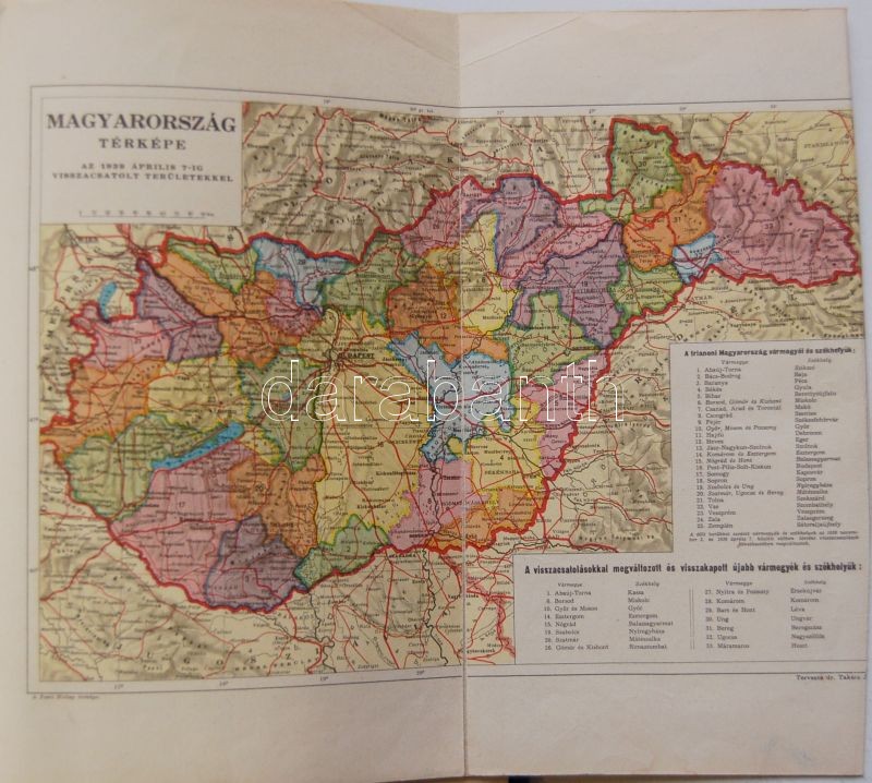 1939 Az ezeréves Magyarország, 1031 mélynyomásu fényképpel és képpel, két színes térképmelléklettel és 82 szövegközti térképpel. Bp, 1939 Pesti Hirlap 1200p. (kötésen néhány sérülés)
