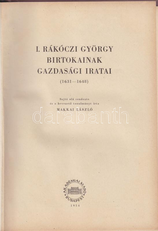 I. Rákocszi GYörgy birtokainak gazdasági iratai, Bp., 1954 Akadémiai k... https://www.darabanth.com/de/146-Fernauktion/146.0/Andere-Sammelgebiete/Bucher-Sonstige-Raritaten~247/I-Rakocszi-GYorgy-birtokainak-gazdasagi-iratai-Bp-1954-Akademiai-kiado~II437436