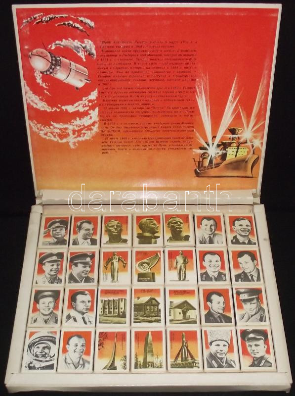 1969 Gagarin ürrepülése és élete 20 darabos eredeti gyűjtői gyufásdobo... https://www.darabanth.com/de/146-Fernauktion/146.0/Andere-Sammelgebiete/Flohmarkt~500120/1969-Gagarin-urrepulese-es-elete-20-darabos-eredeti-gyujtoi-gyufasdoboz-sorozat-Gagarin-or~II436662