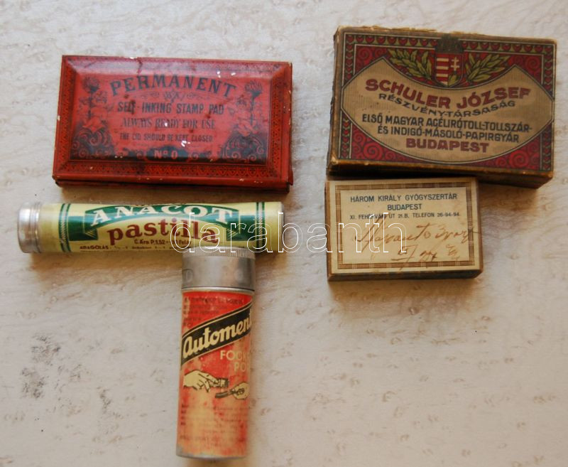 5 db kis dobozka: 2 gyógyszeres, fogkrém poros, tollszár tartó, tintap... https://www.darabanth.com/de/146-Fernauktion/146.0/Andere-Sammelgebiete/Flohmarkt~500120/5-db-kis-dobozka-2-gyogyszeres-fogkrem-poros-tollszar-tarto-tintapados~II384735