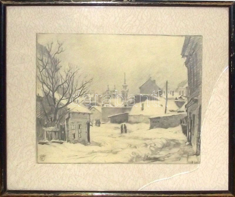 1929 Páris Erzsi (1887-?): Tabáni utcák. ceruza-papír, jelzett keretbe... https://www.darabanth.com/de/146-Fernauktion/146.0/Andere-Sammelgebiete/Gemalde-und-Grafiken~223/1929-Paris-Erzsi-1887-Tabani-utcak-ceruza-papir-jelzett-keretben-36x33-cm-uveg-torott~II428207