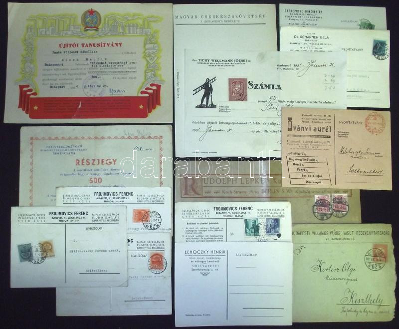Beschreibung: cca 1920-1940 17 db, nagyrészt futott fejléces boríték és számla