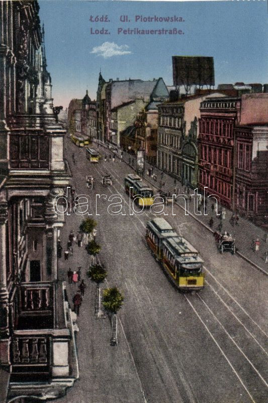 Lodz Piotrkowska street with trams (cut) https://www.darabanth.com/de/146-Fernauktion/146.0/Ansichtskarten/Polen~500036/Lodz-Piotrkowska-street-with-trams-cut~II438561