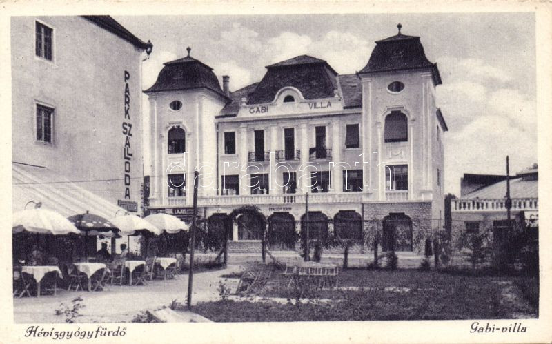 Hévíz-Gyógyfürdő Gabi Villa és a Park Szálloda https://www.darabanth.com/de/146-Fernauktion/146.0/Ansichtskarten/Ungarn~500005/Heviz-Gyogyfurdo-Gabi-Villa-es-a-Park-Szalloda~II420158