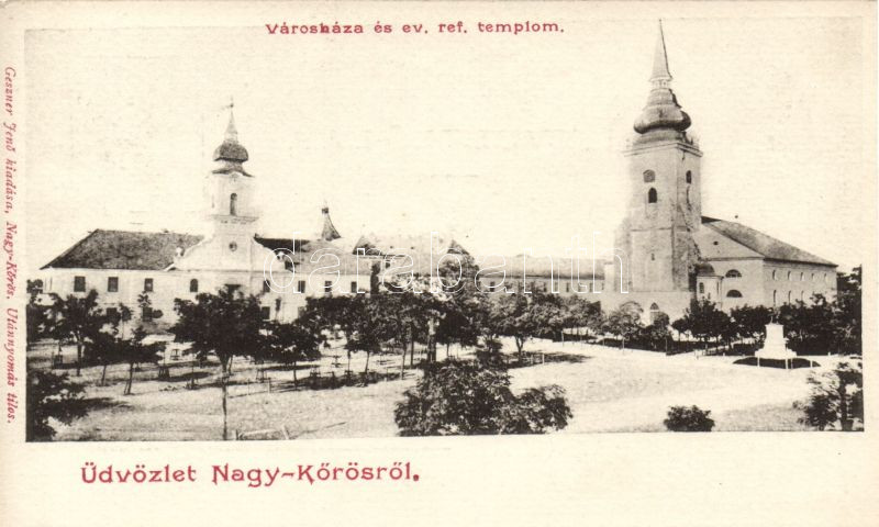 Nagykőrös Városháza és Református templom https://www.darabanth.com/de/146-Fernauktion/146.0/Ansichtskarten/Ungarn~500005/Nagykoros-Varoshaza-es-Reformatus-templom~II437953