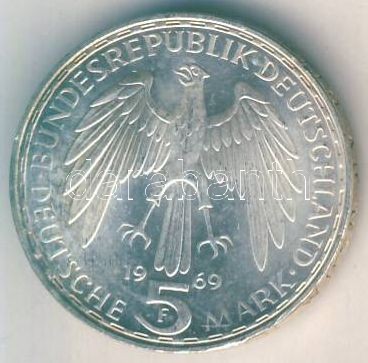 NSZK 1969F 5M Ag "Mercator" T:1- https://www.darabanth.com/de/146-Fernauktion/146.0/Numismatik/Auslandische-Munzen~500112/NSZK-1969F-5M-Ag-Mercator-T1-~II437079