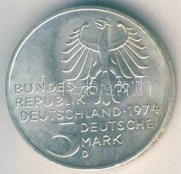 NSZK 1974D 5M Ag "Kant" T:1- https://www.darabanth.com/de/146-Fernauktion/146.0/Numismatik/Auslandische-Munzen~500112/NSZK-1974D-5M-Ag-Kant-T1-~II437078