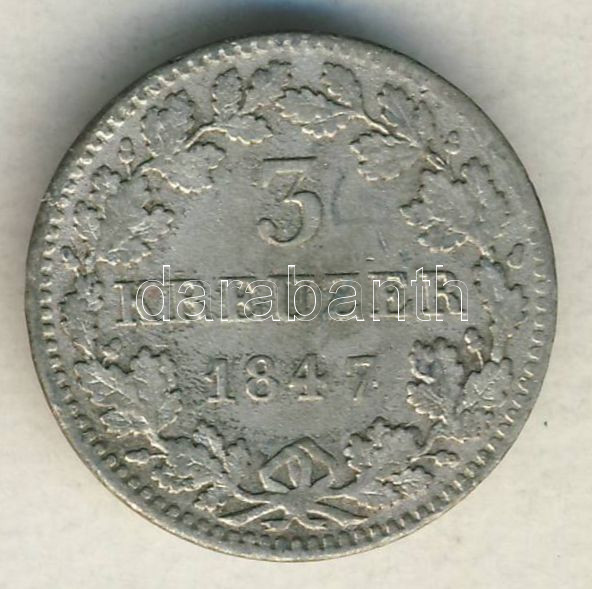 Beschreibung: Német Államok/Bajorország 1847. 3Kr Ag T:3