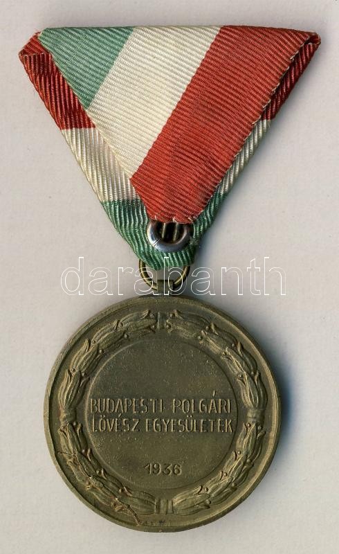 1936. Budapesti Polgári Lövész Egyesületek sport érme mellszalaggal T:... https://www.darabanth.com/de/146-Fernauktion/146.0/Numismatik/Ungarische-Edelmetall-Gedenkmunzen-und-Plaketten~500109/1936-Budapesti-Polgari-Lovesz-Egyesuletek-sport-erme-mellszalaggal-T2~II437458