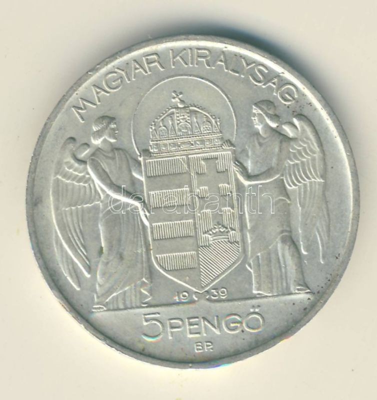 1939. 5P Ag "Horthy - balra" T:2 https://www.darabanth.com/de/146-Fernauktion/146.0/Numismatik/Ungarische-Munzen~500108/1939-5P-Ag-Horthy--balra-T2~II437160
