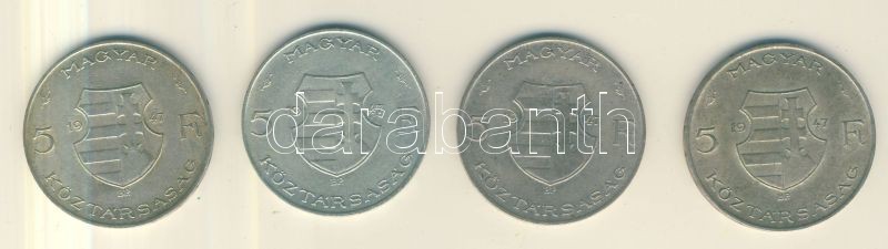 Beschreibung: 1947. 5Ft Ag (4x) "Kossuth" T:2-,3 ph.