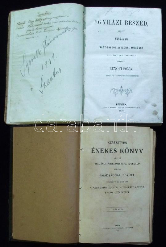 Egyházi beszéd, melyet 1858-iki nagy-boldog-asszonyi bucsúkor az apátfalvi ó-templomban mondott Benőfi Soma.., Eger, 1859, Érseki lyceum + Keresztyén enekes könyv , Győr 1908, Pannónia