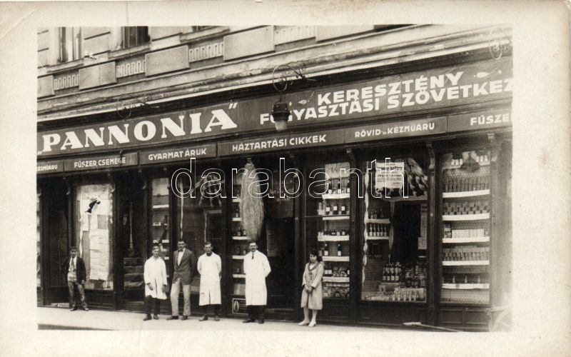 Pannonia keresztény fogyasztási szövetkezet (EK) https://www.darabanth.com/de/147-Fernauktion/147.0/Ansichtskarten/Ungarn~500006/Pannonia-kereszteny-fogyasztasi-szovetkezet-EK~II439579