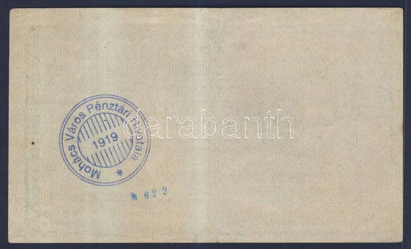 Beschreibung: 1918. 200K "A 2071" hullámos hátlappal és a hátlapon lila "Mohács Város Pénztári Hivatala 1919." felülbélyegzéssel T:III(apró szakadás)