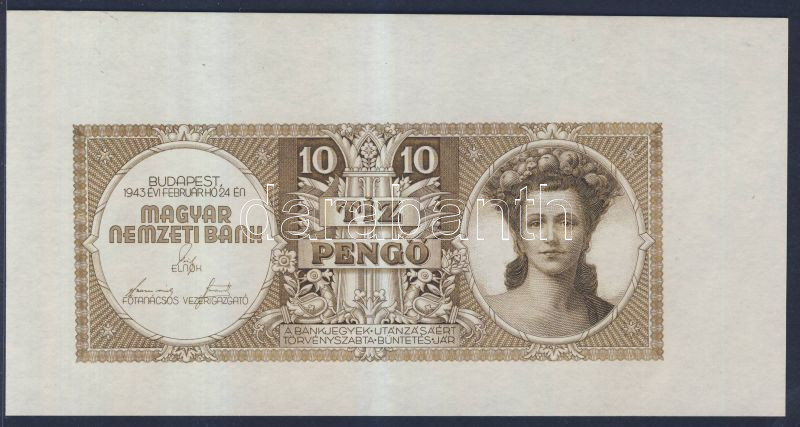 1943. 10P (tervezet) eredeti nyomólemezzel történt későbbi hamis utánn... https://www.darabanth.com/de/147-Fernauktion/147.0/Numismatik/Ungarische-Banknoten~500111/1943-10P-tervezet-eredeti-nyomolemezzel-tortent-kesobbi-hamis-utannyomata-konyvbol-kivag~II430495