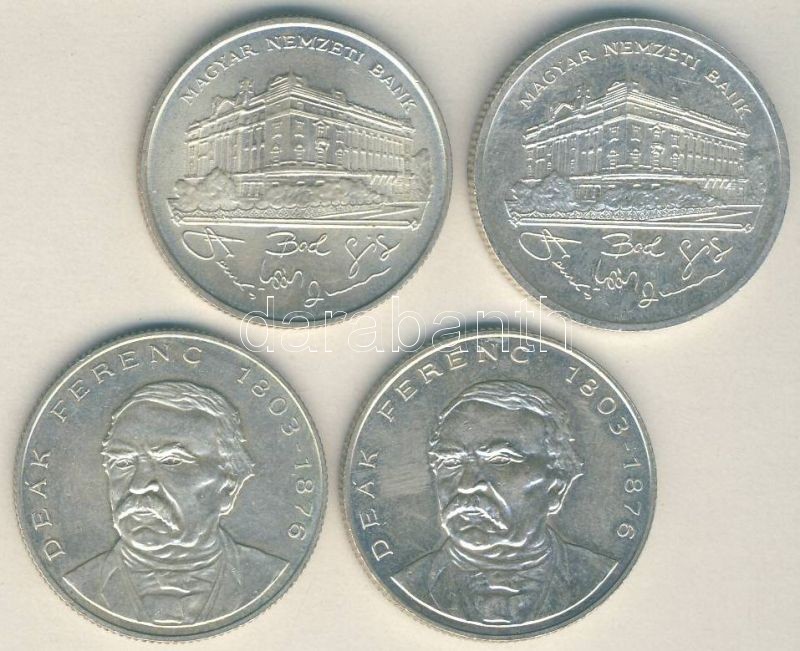 1992-1995. 200Ft Ag (4x) "MNB" + "Deák" T:2 https://www.darabanth.com/de/147-Fernauktion/147.0/Numismatik/Ungarische-Munzen~500112/1992-1995-200Ft-Ag-4x-MNB-plus-Deak-T2~II439845