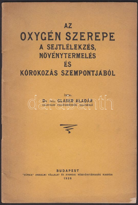Glaser Aladár: Az oxygén szerepe a sejtlélekzés, növénytermelés és kór... https://www.darabanth.com/de/148-Fernauktion/148.0/Andere-Sammelgebiete/Bucher-Sonstige-Raritaten~500038/Glaser-Aladar-Az-oxygen-szerepe-a-sejtlelekzes-novenytermeles-es-korokozas-szempontjabC3~II433322
