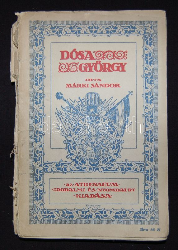 Márki Sándor: Dósa György. Bp. 1913. Magyar Történelmi Társulat. Magyar történeti életrajzok sorozat Gazdag szövegközti és egészoldalas képanyaggal. Fűzött kiadói papírkötésben (sérült gerinc és fűzés)