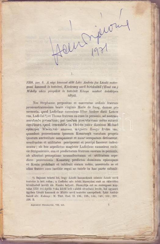 Tasnádi Nagy Gyula: Anjoukori okmánytár. 7. köt. 1358. jan. 1.-1359. m... https://www.darabanth.com/de/148-Fernauktion/148.0/Andere-Sammelgebiete/Bucher-Sonstige-Raritaten~500038/Tasnadi-Nagy-Gyula-Anjoukori-okmanytar-7-kot-1358-jan-1-1359-marcz-31-MTA-1920-kes~II445666