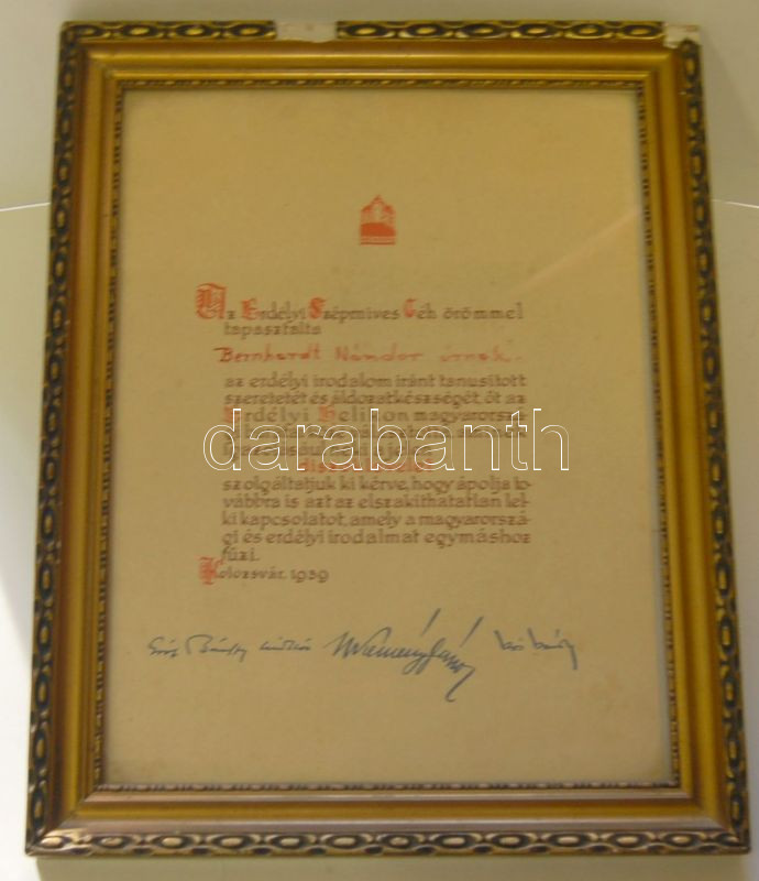 1939 Erdélyi Szélmíves Céh díszoklevél üvegezett keretben 30x38 cm https://www.darabanth.com/de/148-Fernauktion/148.0/Andere-Sammelgebiete/Dokument~500017/1939-Erdelyi-Szelmives-Ceh-diszoklevel-uvegezett-keretben-30x38-cm~II447899
