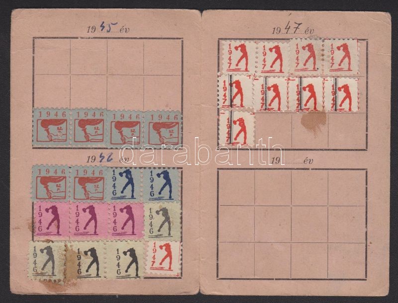 Beschreibung: 1945-1947 Szociáldemokrata Párt tagsági igazolvány tagsági bélyegekkel