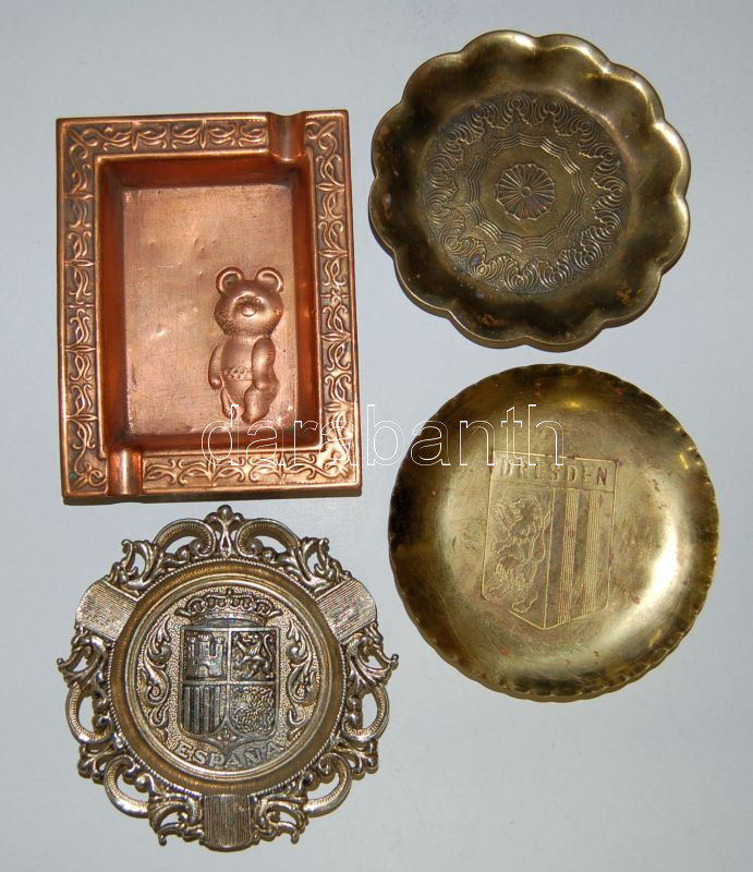 Beschreibung: 4db különböző hamutál, közte: szovjet "Misa" motívumú, Drezda címeres, spanyol modern, réz