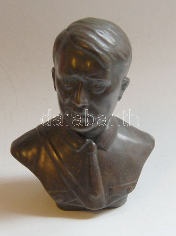 Német Birodalmi időszakból származó Hitler bronz mellszobor, talapzatán azonosítatlan jelzéssel ellátva, szép állapotban, 13.5cm-es magassággal / Original bronze Hitler Statue in good condition