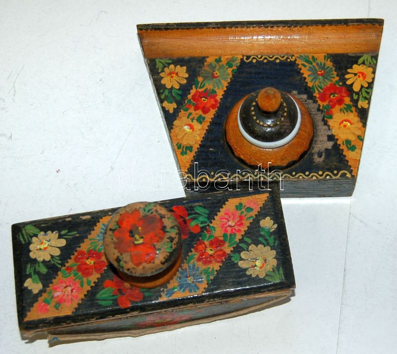 cca 1900 Népies mintájú fa tapper és tolltartó porcelán tintatartóval https://www.darabanth.com/de/148-Fernauktion/148.0/Andere-Sammelgebiete/Flohmarkt~500041/cca-1900-Nepies-mintaju-fa-tapper-es-tolltarto-porcelan-tintatartoval~II446890