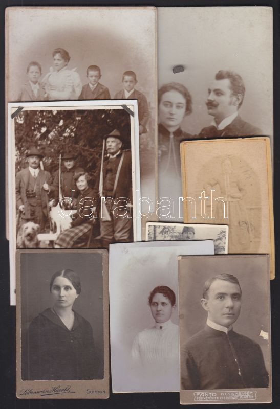 Beschreibung: ~1870-1916 8 db klf keményhátú fotó, benne vadászatról készült