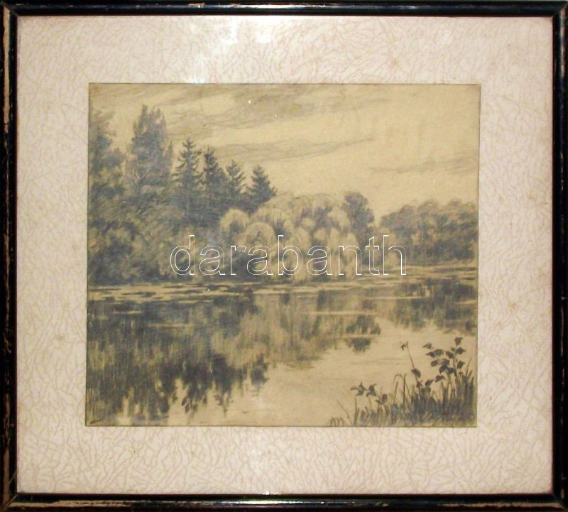 Beschreibung: cca 1920 Páris Erzsi (1887-?): Erdőszélen ceruza-papír, jelzett keretben 36x33 cm