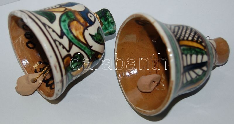 Beschreibung: 2 db kicsi festett Korondi kerámia csengő 7 cm (egyik csorba) / 2 korond ceramic bells