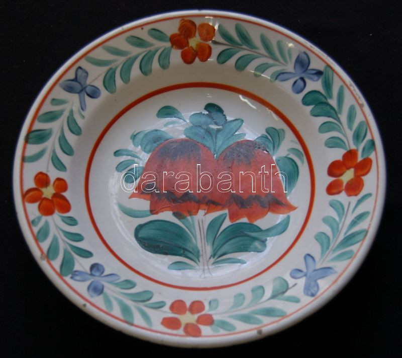 cca 1880 Kézzel festett jelzett Bélapátfalvi népies mázas majolika fal... https://www.darabanth.com/de/148-Fernauktion/148.0/Andere-Sammelgebiete/Keramiken~500040/cca-1880-Kezzel-festett-jelzett-Belapatfalvi-nepies-mazas-majolika-falitanyer-d-23cm~II438912