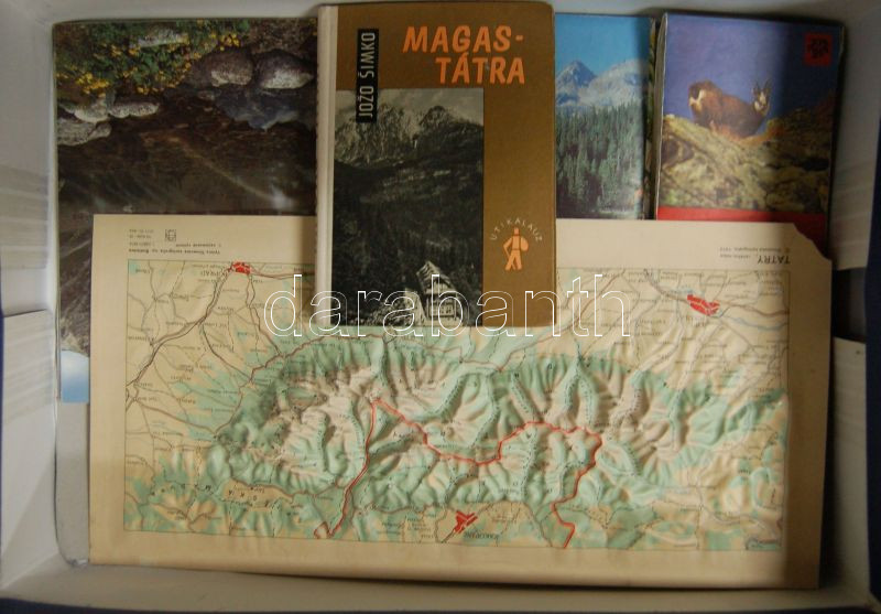 Beschreibung: Tátra-tétel: 3 dimenziós térkép 20x40cm, A Tátrai Nemzeti Park állata- és növényvilága, útikönyv térképpel, stb.