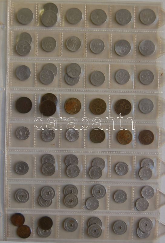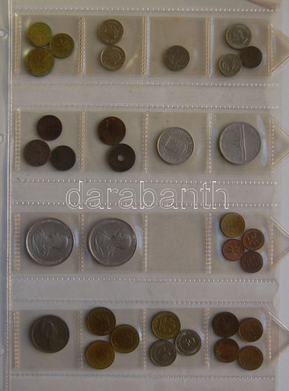 Vegyes magyar és külföldi fémpénzekből álló hobbigyűjtemény, összesen 262db albumlapokba rendezve, fém-és alumínium fillérek,pengők és forintok 1930-as évektől + Jugoszlávia Görögország, Szingapúr, Szovjetunió, Franciaország, Románia, Csehszlovákia, stb. pénzei T:vegyes / Mixed Hungarian and world coins collection, ordered in album sheets, altogether 262 pieces. C:mixed