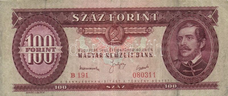 1949. 100Ft (3x) T:II-,III https://www.darabanth.com/de/148-Fernauktion/148.0/Numismatik/Ungarische-Banknoten~500116/1949-100Ft-3x-TII-III~II444210