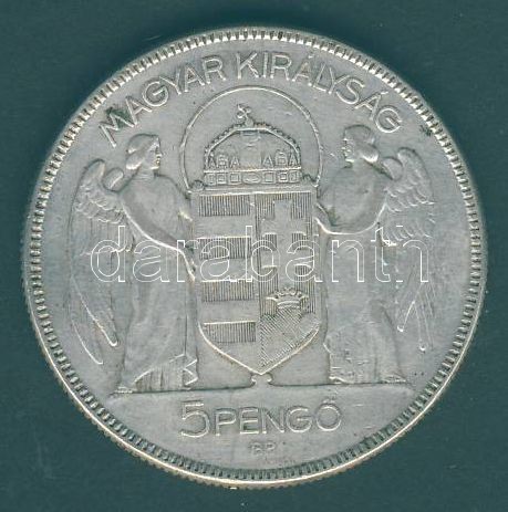 1930. 5P Ag "Horthy jobbra" T:3 ph. https://www.darabanth.com/de/148-Fernauktion/148.0/Numismatik/Ungarische-Munzen~500128/1930-5P-Ag-Horthy-jobbra-T3-ph~II445685