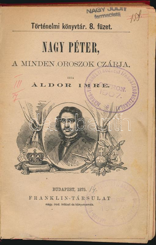 1875/1899 Áldor Imre: Nagy Péter, a minden oroszok cárja + Gaál Mózes: Cortez Hernandó, Mexico meghódítója, egybekötve, Fraklin Társulat, Bp., szép állapotban