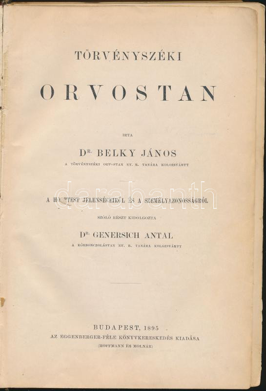 1895 Dr. Belky János: Törvényszéki orvostan, Atheneum Kiadó, Bp., geri... https://www.darabanth.com/de/149-Fernauktion/149.0/Andere-Sammelgebiete/Bucher-Sonstige-Raritaten~215/1895-Dr-Belky-Janos-Torvenyszeki-orvostan-Atheneum-Kiado-Bp-gerinc-es-borito-serult~II453260
