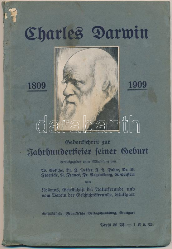 1909 Charles Darwin életéról szóló német nyelvű könyv, puha kötés, kis... https://www.darabanth.com/de/149-Fernauktion/149.0/Andere-Sammelgebiete/Bucher-Sonstige-Raritaten~215/1909-Charles-Darwin-eleterol-szolo-nemet-nyelvu-konyv-puha-kotes-kisse-viseltes-allapo~II450219