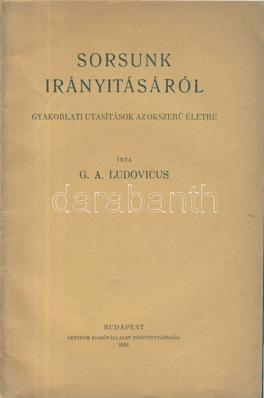 Beschreibung: Ludovicus, G. A.: Sorsunk irányításáról. Gyakorlati utasítások az okszerű életre. Budapest, Centrum Kiadóvállalat Rt. 1924. 58p.