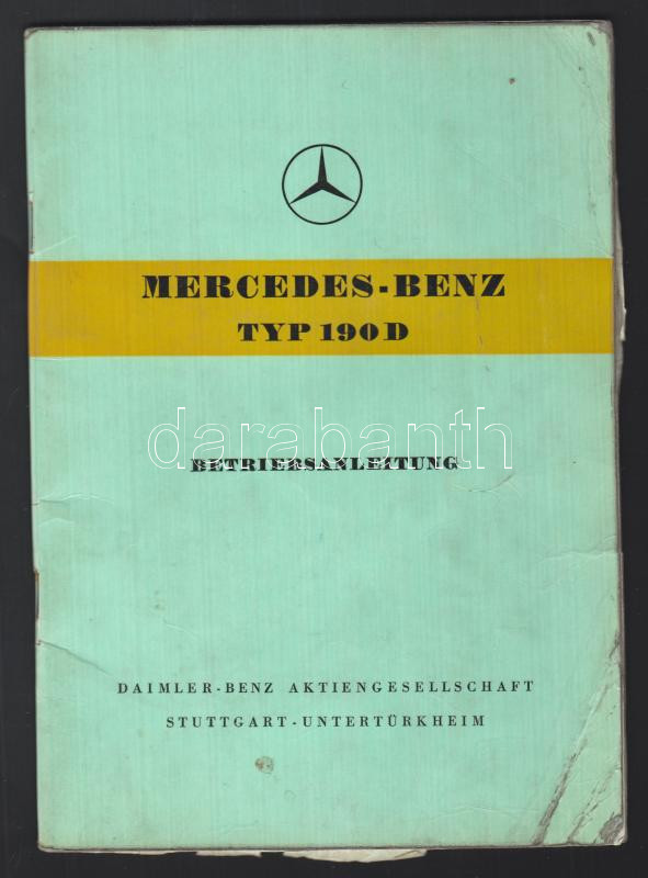 Mercedes-Benz 190D típusú gépjármű használati útmutatója részletes műs... https://www.darabanth.com/de/149-Fernauktion/149.0/Andere-Sammelgebiete/Bucher-Sonstige-Raritaten~215/Mercedes-Benz-190D-tipusu-gepjarmu-hasznalati-utmutatoja-reszletes-muszaki-rajzokkal-es-a~II453478